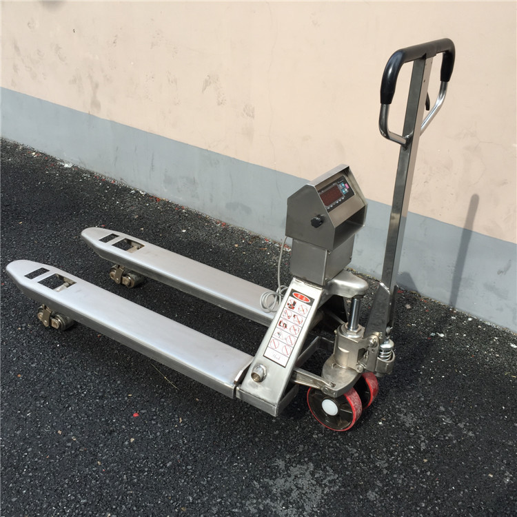 不鏽鋼叉車秤簡(jiǎn)介:1、叉車(chē)秤是指在小(xiǎo)型手動液壓升(shēng)降搬運車基礎上增加高精度稱重傳感器和智能化數字顯示儀表而組成的稱重(chóng)係統,電子(zǐ)叉車秤是一款集貨物(wù)搬運,具備一(yī)般托盤搬運 車(chē)的全部功能,適(shì)用任何大小物體的搬運、計量稱(chēng)重(chóng)功能為一體的液(yè)壓搬運車秤,每次稱重的數(shù)據可以自動顯示(shì),電子叉車秤獨特設計的力學結構具有防過載、偏 載、傾覆(fù)的特性,最小的離地間隙(80mm),用戶(hù)可(kě)以(yǐ)如(rú)同普通叉(chā)車一樣正常使用(yòng)。